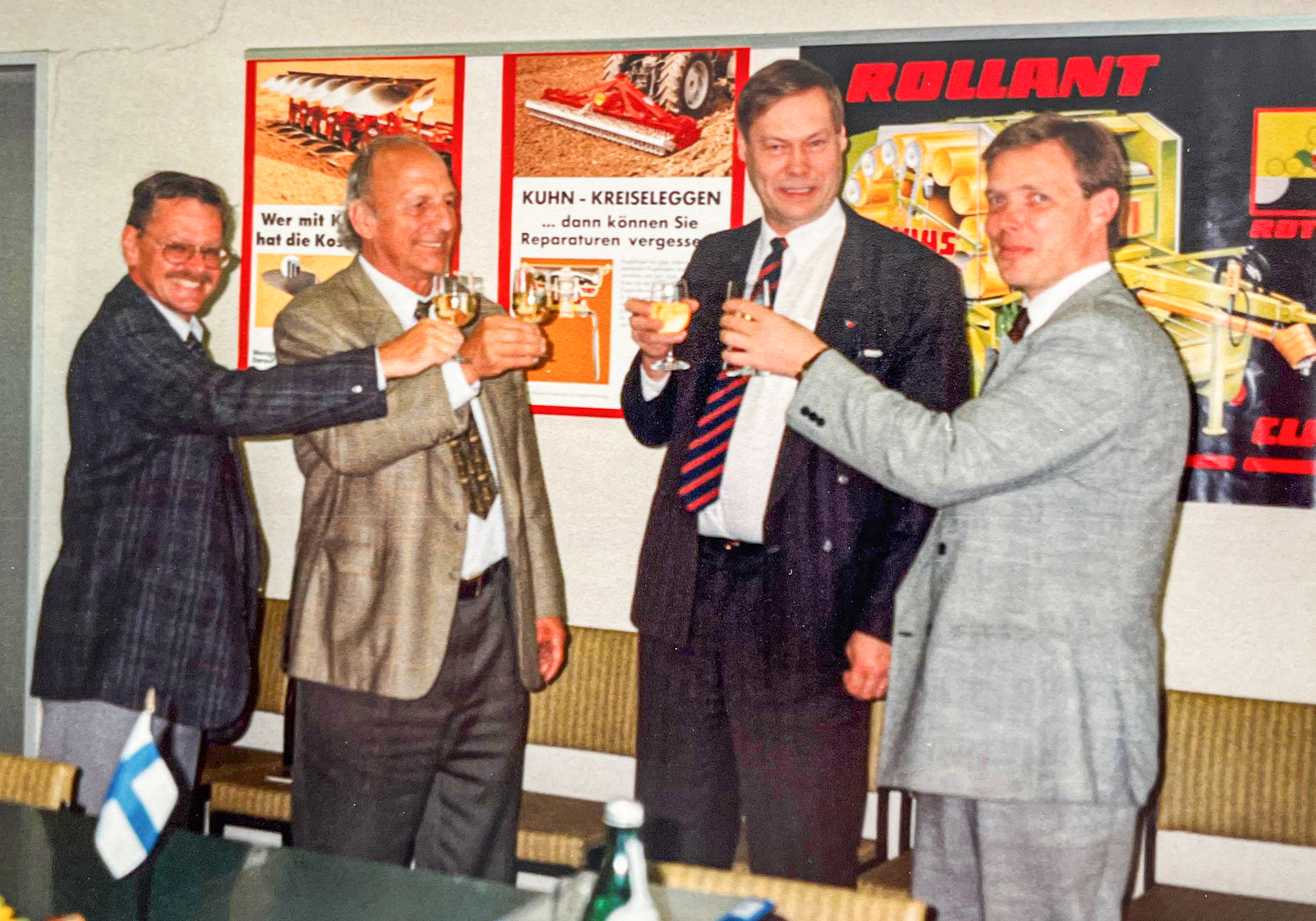 Peter Flückiger a fait ses débuts dans le secteur des machines agricoles de manière inattendue en 1972. Son ancien collègue de stage commercial, Hermann Sieber, l'a alors recruté chez GVS (Genossenschaftsverband Schaffhausen) pour développer le réseau de concessionnaires suisse en tant que directeur général des machines agricoles et établir les marques Fendt, Krone et Rabe. « Les tracteurs étaient une nouveauté pour moi, mais j'aimais l'idée de construire quelque chose », se souvient M. Flückiger, qui travaillait auparavant pour le groupe américain IBM. Il s'est lancé, comme il le disait, « sur les routes » et a convaincu au fil des ans de plus en plus de concessionnaires de rejoindre le réseau de distribution de la GVS.